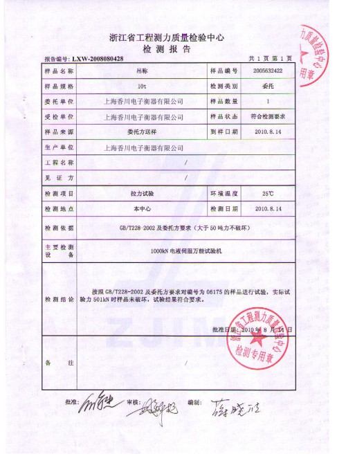 • 吊秤傳感器拉力檢測(cè)證